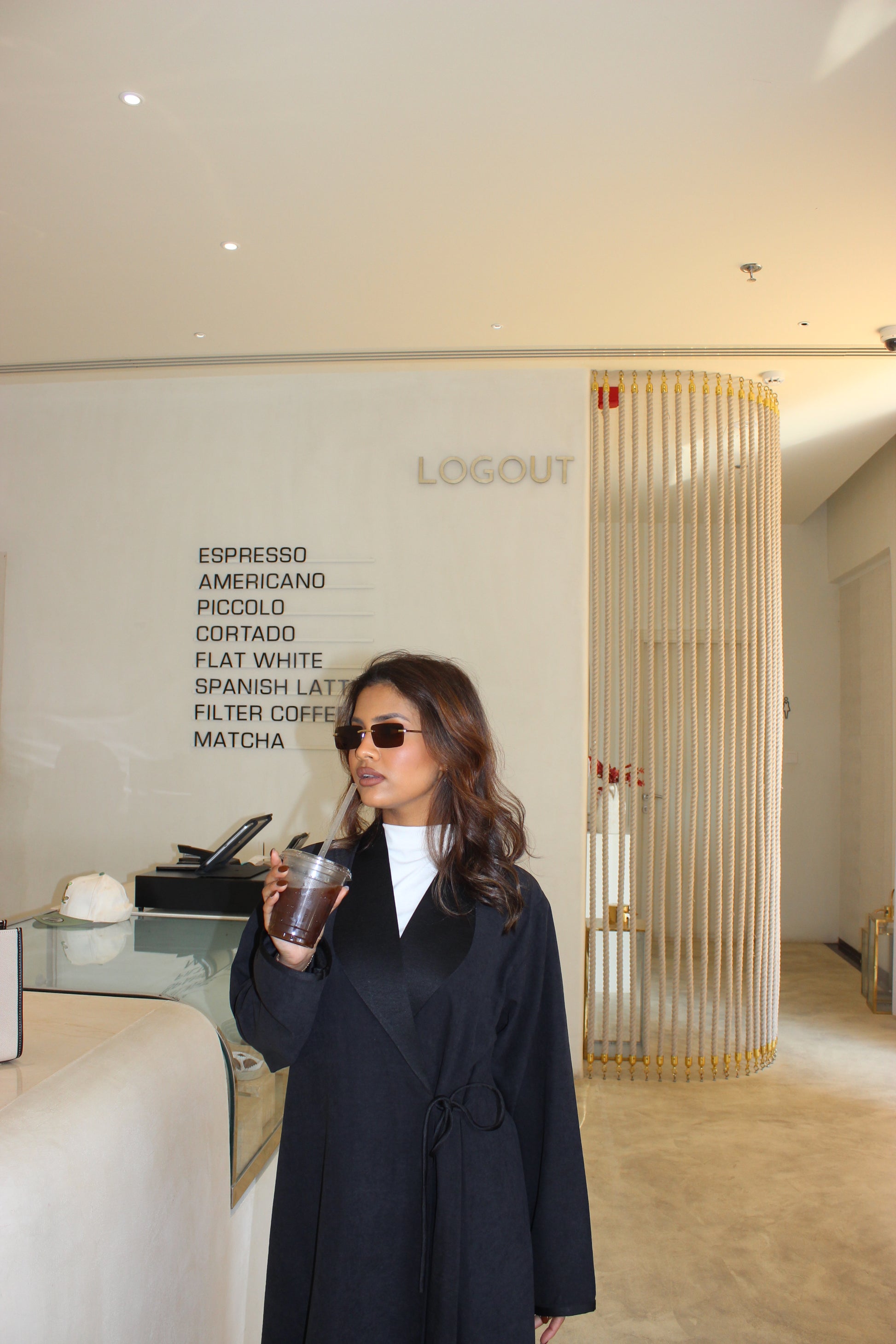 Design: A wrap-style abaya with a waist tie and relaxed, flowy fit.