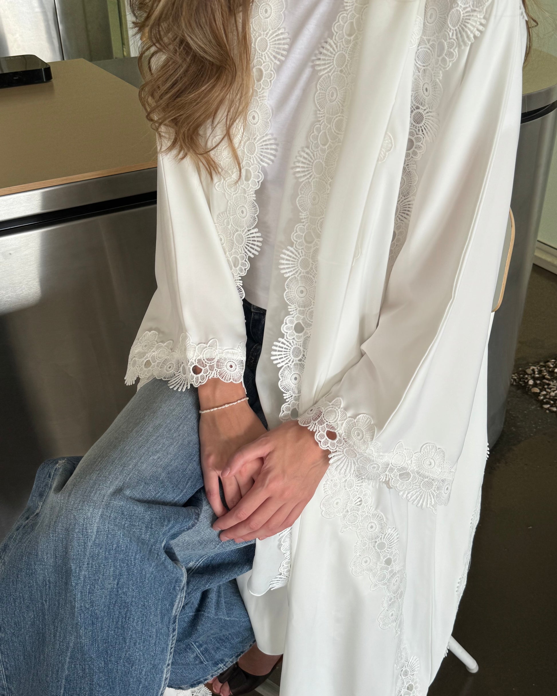 Design: Beautiful lace detailing on the sheila, front, arms, and back with elegant placement.